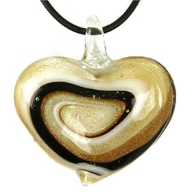 Glass Murano Heart Necklace Pendant Brown Bronze Black Swirl Glitter Heart Pendant Necklace by Bucasi