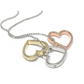 White Gold Plated Triple Crystal Heart Necklace Jewelry